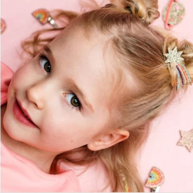 Environ 5,5 x 2,5 cm, barrette cheveux cousue sur une pince clic clac de 4 cm.