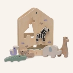 Faites en sorte que votre enfant rassemble tous les animaux de la jungle dans cette amusante maison en bois et passez des heures d'amusement. Les 6 animaux ne peuvent entrer que par leur propre compartiment, ce qui représente un véritable défi pour votre enfant. Jouer avec des jouets en bois aide à développer la motricité fine et cette maisonnette y contribue sans aucun doute! Tout le bois dans ce puzzle est 100 % certifié FSC .