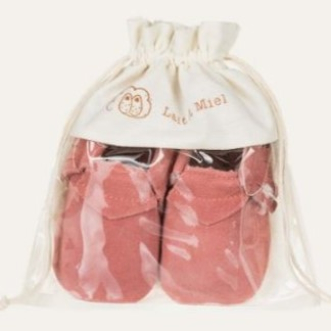 Chaque paire de chaussons en cuir souple est livrée dans un sachet en toile de jute naturelle et réutilisable.