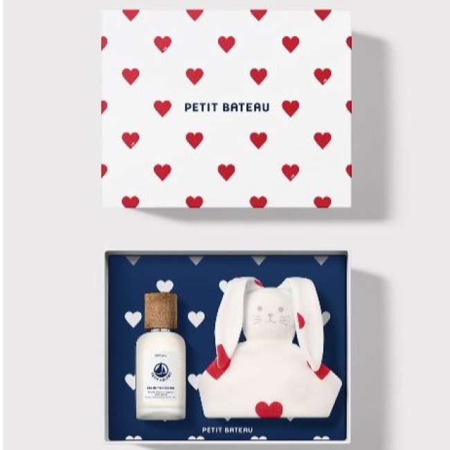 Un coffret cadeau composé d'une eau de senteur relaxante sans alcool 50ml et d'un doudou coeur en coton, à offrir dès la naissance.