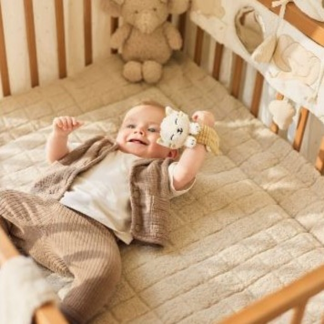 Ce hochet de poignet adorable est parfait pour bébé. Le petit mignon en bouclé présente de jolies rayures jaunes et émet un son joyeux à chaque mouvement. Le bracelet se fixe facilement au poignet de bébé. Le nouveau compagnon préféré de votre tout-petit, toujours à portée de main !