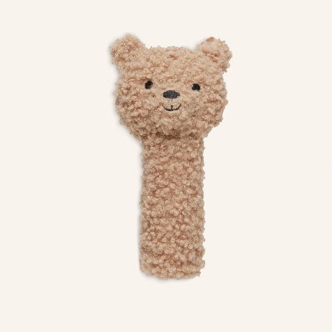 Le hochet est parmi les jouets les plus mignons qui soient pour bébés ! Faciles à saisir, ils émettent des sons amusants et sont super mignons à regarder. À l'intérieur de la tête du nounours se trouve une petite cloche qui sonne doucement lorsque votre bébé bouge le hochet. C'est un jeu très intéressant, repété par votre bébé à l'infini. Et en raison de son aspect très doux, après avoir joué, il est possible de faire des câlins au nounours. Tellement mignon ! Choisirez-vous Olive Green ou Wild Rose ?