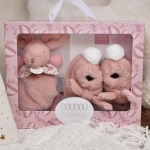 Craquez pour ce coffret cadeau bebe "chic à la Française" : un Lapin Doudou de 15 cm et ses chaussons assortis, délicatement poudrés et ornés d'un imprimé élégant. Ces chaussons, doux et confortables, enveloppent les petits pieds de bébé dans un cocon de tendresse.