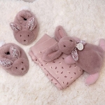 • Chaussons 0-6 mois confortables assortis au Doudou présenté dans le coffret