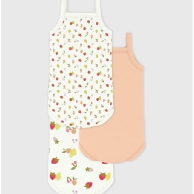 Ce lot comprend deux bodies imprimés fruits et un body uni.