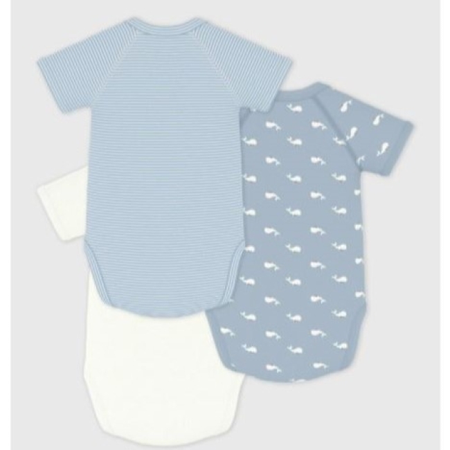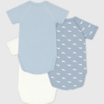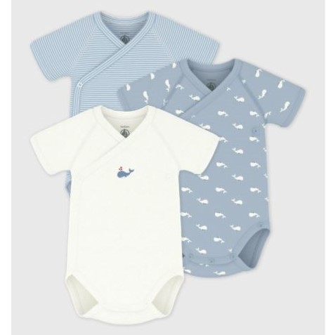 Lot de 3 bodies croisés manches courtes mixte en côte 1X1, une matière extensible et confortable.