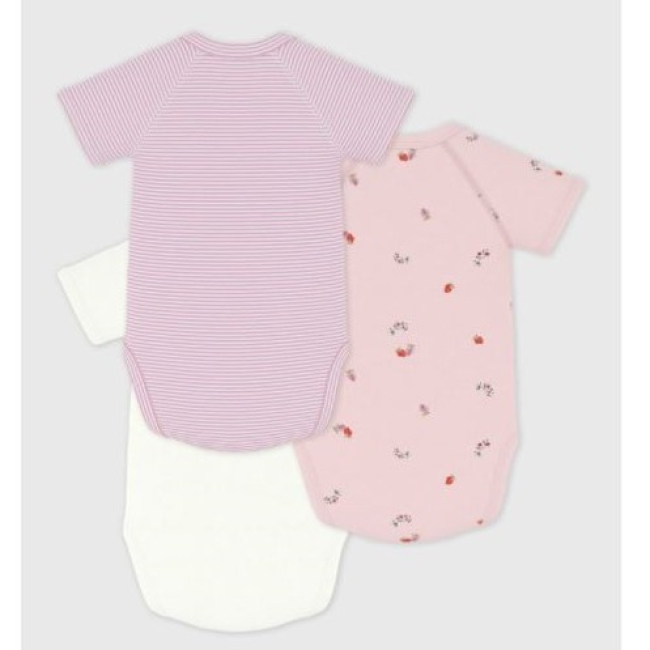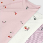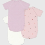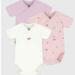 Lot de 3 bodies croisés manches courtes fille en côte 1X1, une matière extensible et confortable.