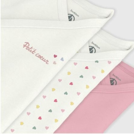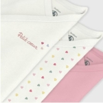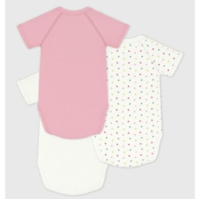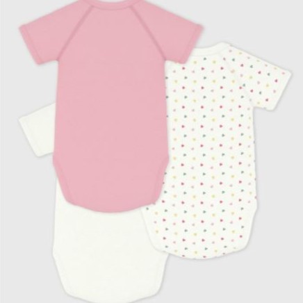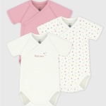 Lot de 3 bodies croisés manches courtes fille en côte 1X1, une matière extensible et confortable.