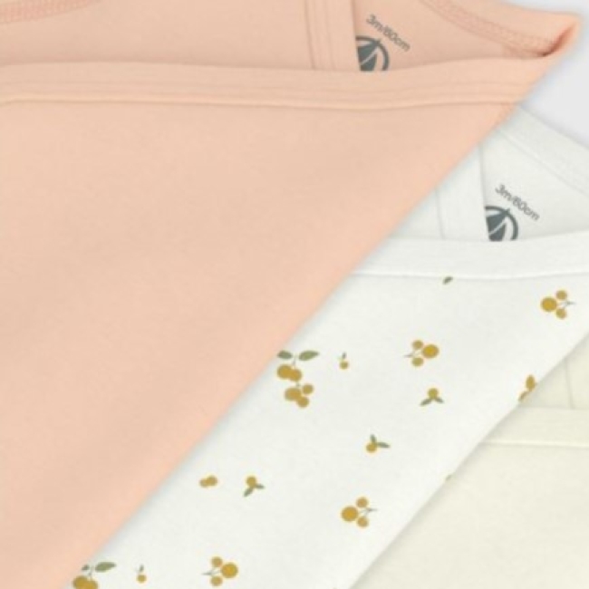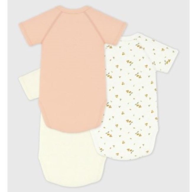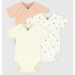 Lot de 3 bodies croisés manches courtes fille en côte 1X1, une matière extensible et confortable.