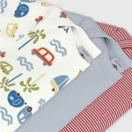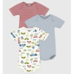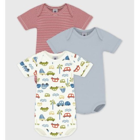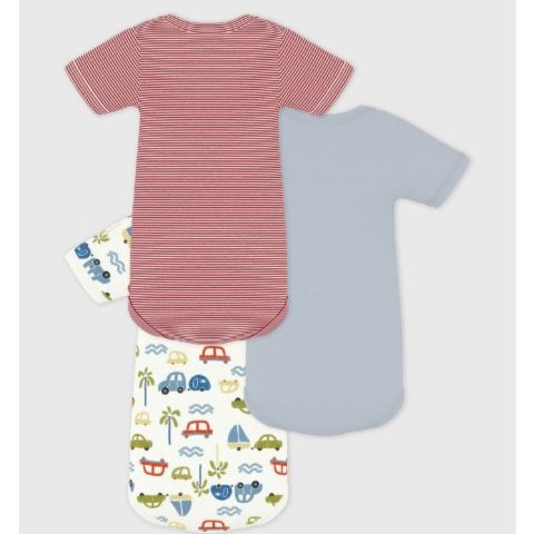 Ce lot comprend un body à rayures milleraies, un uni et un imprimé voiture.