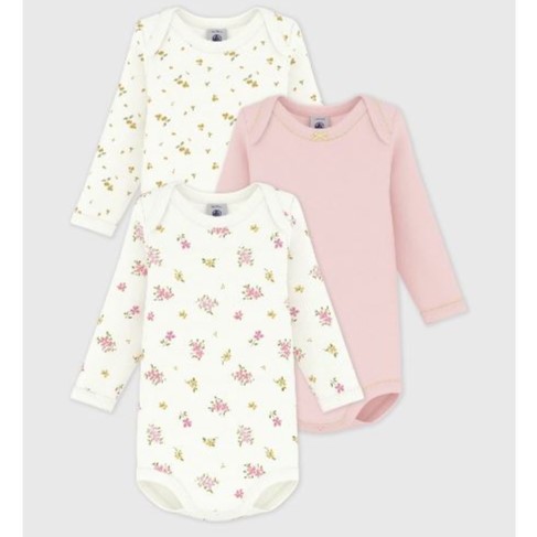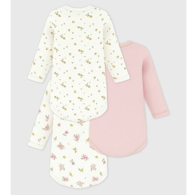 Lot de 3 bodies fille manches longues en côte 1X1, une matière extensible et confortable.