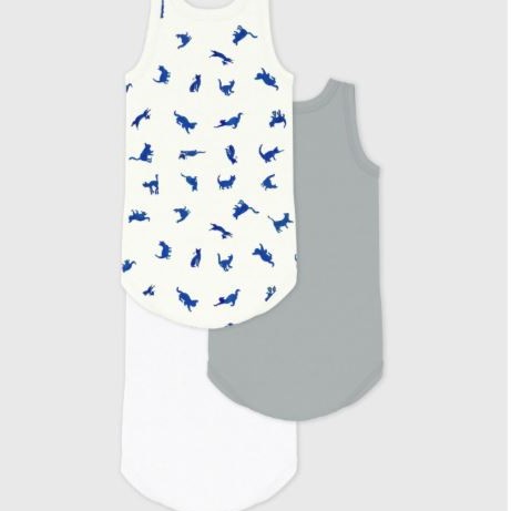 Ce lot comprend deux bodies unis dont un avec sérigraphie et un imprimé chats.