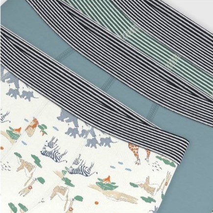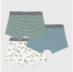 Ce lot comprend un boxer en côte 1x1 unie, un boxer en côte 1x1 rayures milleraies et un boxer imprimé savane.