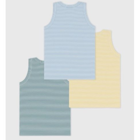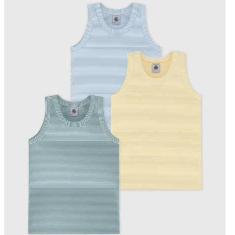 Lot de 3 débardeurs garçon en côte 1x1 rayures milleraies, une matière extensible et confortable.