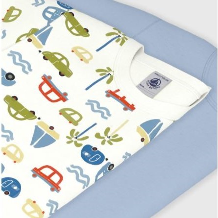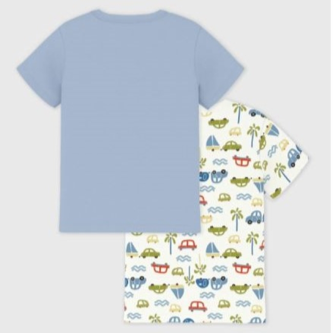 Ce lot comprend un tee-shirt en cà´te 1x1 unie et un tee-shirts imprimé voitures.