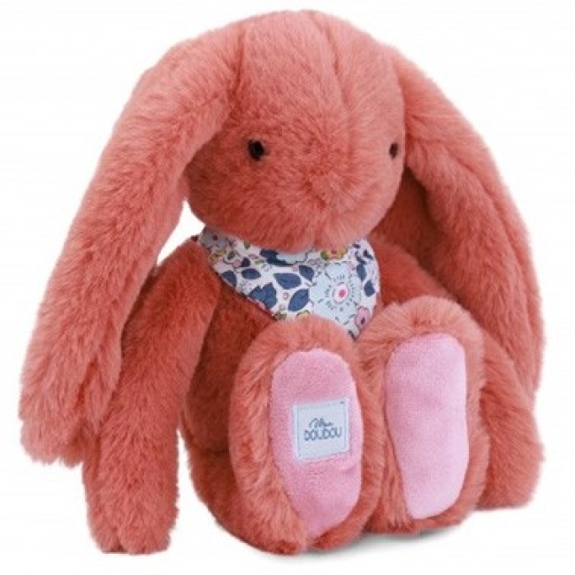 Offrez un Lapin Fleurette 25 cm, un compagnon de tendresse au toucher ultra-doux. Avec son bandana fleuri motif exclusif Doudou et Compagnie, cette peluche allie élégance et réconfort. Son format généreux et son pelage moelleux sont parfaits pour des câlins apaisants.