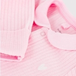 Ce pyjama raffiné, avec une broderie poitrine, un col polo et des moufles intégrées, est idéal pour les premiers mois du nouveau-né.
