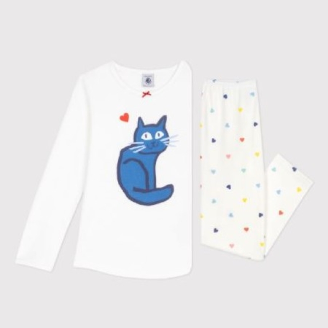 Pyjama fille en côte 1x1, une matière extensible et confortable.