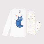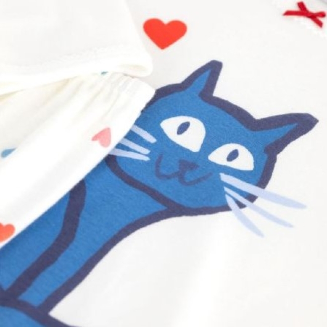 Haut de pyjama en cà´te 1x1 unie avec un motif chat imprimé sur le devant.