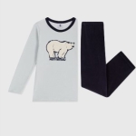 Pyjama en velours doux uni avec un motif ours imprimé sur le devant.