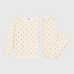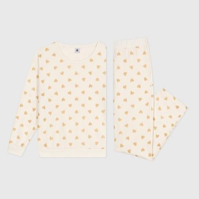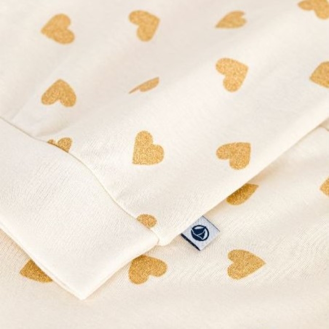 Pyjama femme en côte 1X1 cœurs à paillettes, une matière extensible et confortable.