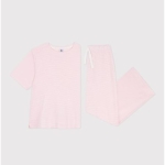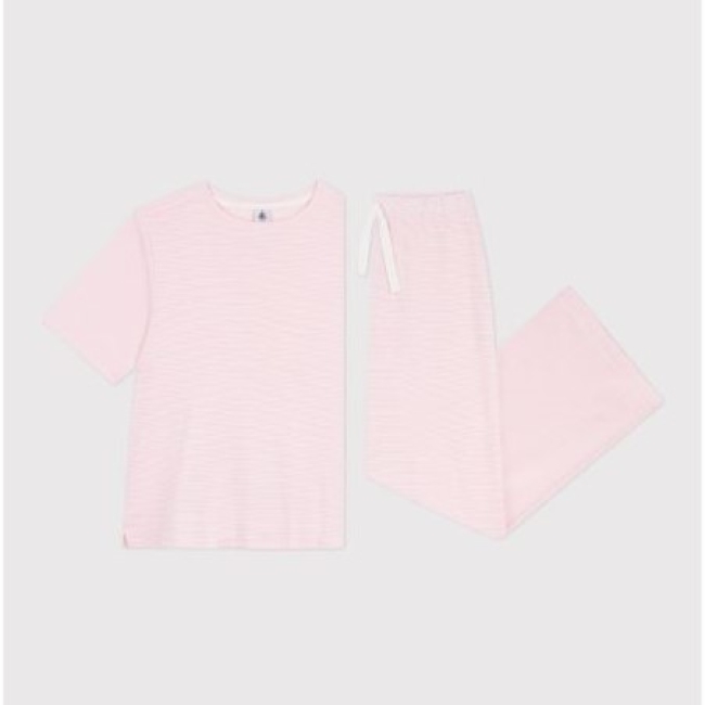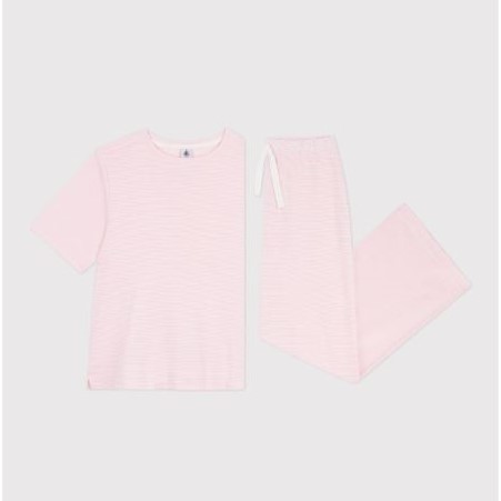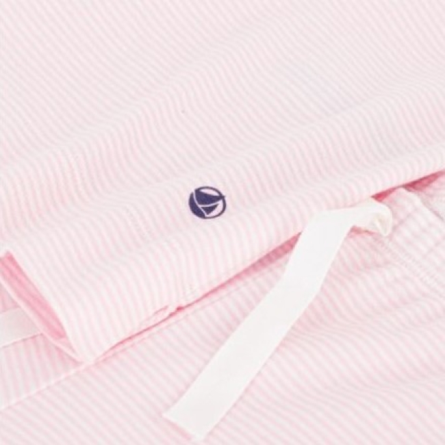 Pyjama en côte 1x1 à rayures milleraies roses, la matière emblématique de Petit Bateau.