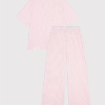 Pyjama femme jambes larges en côte 1X1 rayures milleraies, une matière extensible et confortable.