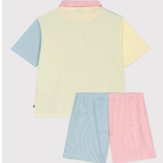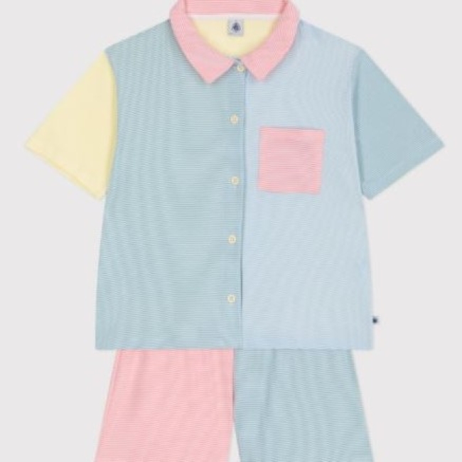 Nos stylistes ont imaginé pour ce pyjama un joyeux méli-mélo de couleurs, sublimé par notre emblématique côte 1x1 à rayures milleraies. Un effet acidulé garanti, parfait pour la saison estivale !