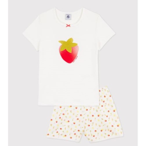 Pyjama court fille en côte 1x1, une matière extensible et confortable.