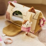 Ce triangle d'activités magique de la collection Flower Fairies offre des heures de jeu à votre petit. Le doudou triangulaire, en forme de château, est fabriqué en doux tissu côtelé et comprend un grand miroir ainsi que des portes à ouvrir. Le château est orné d'une calèche brodée et comporte divers éléments ludiques tels qu'un anneau de dentition rose vif, un pendentif en forme de cœur doux, des parties qui crépitent, des étiquettes et des pochettes. Placez ce triangle dans le parc ou sur le tapis de jeu et laissez votre enfant explorer à sa guise !